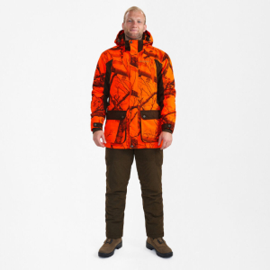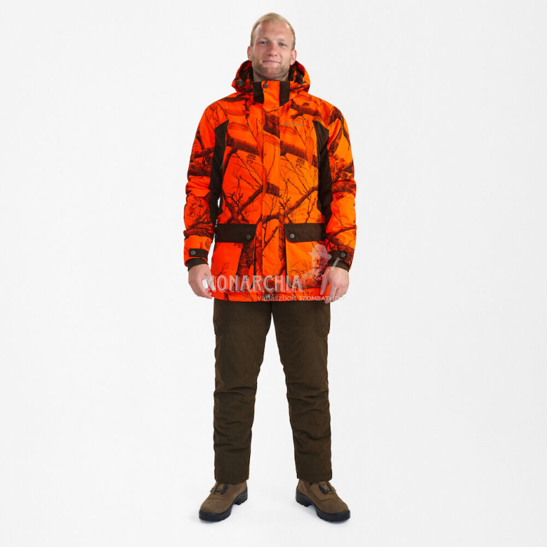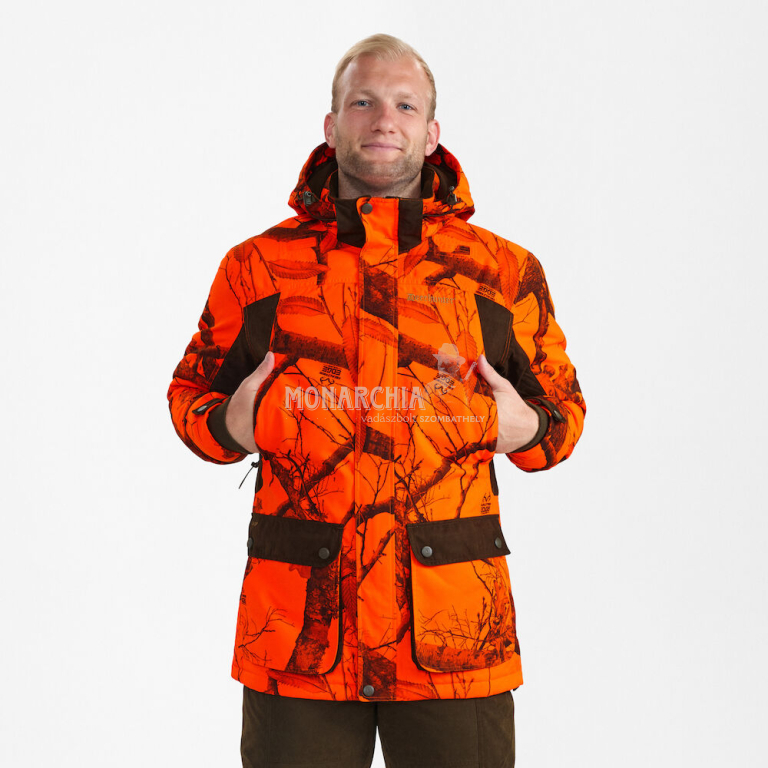 A REALTREE EDGE® Orange mintázat hatékonyan álcáz, miközben a fényes narancssárga részlet a vadász láthatóságát biztosítja a társak számára. A műbőr részletek klasszikus vadászhangulatot adnak, a levehető kapucni pedig a személyes igényekhez igazítható. Hosszú órákra hideg időben tervezve, a kabát szél- és vízálló, és a Deer-Tex® Performance Shell membrán biztosítja a kellemes belső klímát minden időjárási körülmény között. A lélegző mesh és steppelt bélés kombinációja kiváló komfortot és meleget nyújt. Praktikus funkciók: Vízálló, részben levehető, mosható zsákmányzseb, amely ülőpárnaként is használható, így hidegben kényelmes a pihenés, Napoleon-zseb a fontos apróságok kéznél tartásához, Két kézmelegítő zseb, hogy a kezek mindig védve legyenek a hidegtől. Az Eagle Téli Kabát hatékony álcázással, praktikus kialakítással és kiemelkedő kényelemmel ötvözi a teljesítményt, így ideális választás a hideg időjárásban végzett vadászathoz.