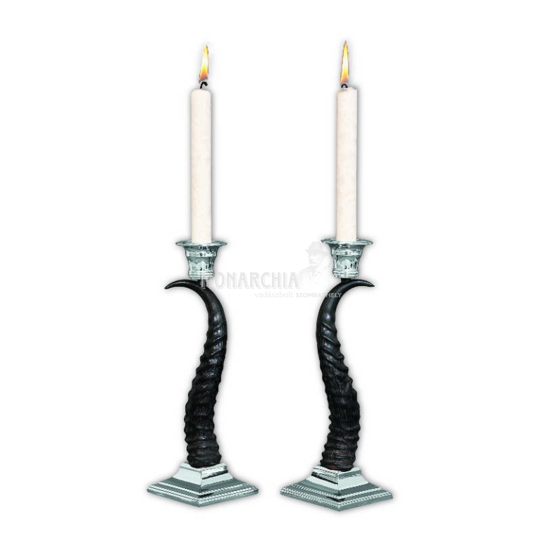 Ez a különleges, ezüstözött Springbok szarv gyertyatartó pár a vadászi elegancia és a klasszikus kézműves művészet találkozása. A valódi, gondosan válogatott springbok szarvakból készült darabok fényes ezüstözést kaptak, így megtartják természetes formavilágukat, miközben kifinomult, nemes megjelenést nyújtanak bármely enteriőrben.Részletek ...