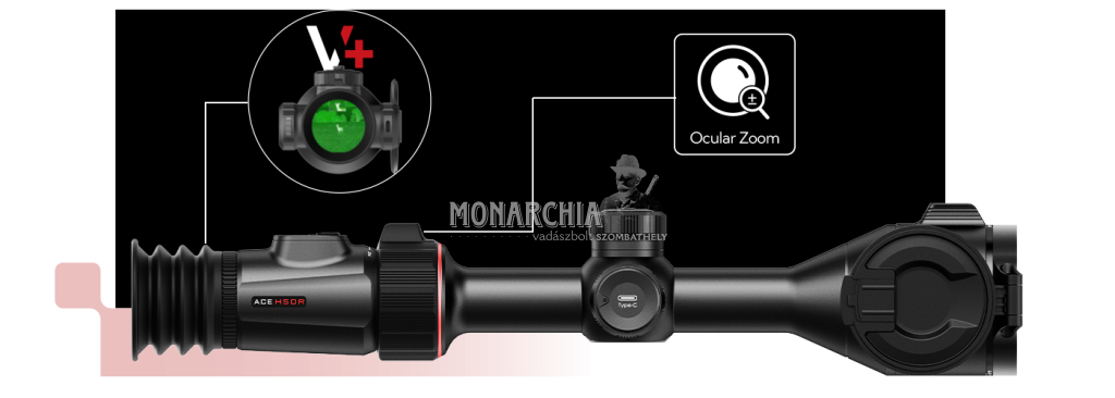 Az ACE céltávcső sorozat non plus ultrája az S60R. Ez az elérhető legjobb, ami 2024 negyedik negyedévében megvalósítható a jelen technológia szinten - polgári viszonylatban. A csodabogár minden elképzelhető felhasználási körülményre kínál megfelelő megoldást. Az S60R egy karakter. Stílusa van, ami elvarázsol. A nagy múltú hőkamera gyártó ezen sorozatában elképesztő 1280x1024 pixel méretű termikus érzékelő csücsül. A saját fejlesztésű szenzor nem sok kihívóra talál. Az ACE S60R rendkívül kiegyensúlyozott teljesítményt nyújt, !! 15mK !! érzékenységű NETD-vel. Ez a lehengerlő érték lehetővé teszi, hogy a legkisebb, de tényleg a legkisebb hőmérséklet eltéréseket is megjelenítse, kivételesen részletes hőérzékelést és lenyűgözően informatív képet biztosítva. Ehhez párosul az 1280-as felbontás, ami a finoman megtervezett színátmenetekkel elviszi a bulit. Az elmúlt talán 3 év legnagyobb durranását tartjuk a kezünkben. Nem félkészen, piacra éretten, kipróbáltan. Az ACE széria 60-as tagja 60mm/F1.0 értékű objektívvel rendelkezik. A 60-as méretű objektív lényegesen több infravörös fényt enged a szenzorra. Ez a lényegi előrelépés és nagy áteresztőképességű optikai elemek alkalmazása nagyságrendekkel fényerősebb és tisztább képekben jelent az okulár oldalon, a kijelzőn. A hatalmas szenzornak is van miből dolgoznia. Az ACE S60R lenyűgöző, akár 3100 méteres érzékelési távolsággal is büszkélkedhet ember méretű élőlény / objektum esetén. Ez a képesség lehetővé teszi a távoli célpontok egyértelmű azonosítását, ami jelentős előnyt jelent a nagy távolságú vadászatban. Szabadalmaztatott Reality+ képfeldolgozó algoritmusunk hatékonyan kiküszöböli a környezeti hőmérséklet okozta zajt, javítva a kontrasztot és a részletek tisztaságát. A mesterséges intelligencia a megfelelő körülmények közt alkalmazva elképesztő segítség lehet. A kép illusztráció, az S60-ban ez a megjelenítés a végletekig tökélyre csiszolt és részleteiben is szép. És itt a céltávcső sorozat igazán nagy durranása! Az új Vision+ átfogó rendszere 1,03 hüvelykes, kerek, 2560×2560-as AMOLED képernyővel és az iparágban egyedülálló okuláris zoommal rendelkezik a közvetlen nagyításhoz. A hagyományos e-zoomtól eltérően ez a kifinomult rendszer megakadályozza az alap nagyításhoz képesti elmosódást és a torzulást a közeli nézeteknél. A 60-as esetében ez azt jelenti, hogy 3x nagyítás érhető el az óriási szenzor képébe klasszikusan, tárcsával belenagyítva, csak utána kezdődik a digitális nagyítás a tornyon. A hőkép felbontása érezhetően sokkal később pixelesedik, a legtöbb szituációban tökéletesen éles és kontúros marad! Ez eddig egy készülékben sem volt elérhető. Élvezd a nagy felbontású képeket és a szélesebb látómezőt a magával ragadó és kényelmes megfigyelési élmény érdekében. Az ACE beépített LRF modullal felszerelt változatai 1200 méteres lézeres távolságmérést kínálnak valódi optikai tengely központozással, biztosítva a pontos távolságmérést, miközben a megjelenés visszafogottan elegáns marad. Az ACE kettős akkumulátor rendszert alkalmaz, egy 4000mAh beépített akkumulátorral és egy további cserélhető 18650-es akkumulátorral. Ez a felépítés kielégíti a hosszabbra nyúló szabadtéri vadászatok igényeit is. Az ACE olyan alapvető funkciókat tartalmaz a különböző vadászati forgatókönyvekhez, mint a menüből elérhető ballisztikai számítások, az automatikus képernyőleállítás, a visszarúgás által aktivált videofelvétel és a zármentes (akadásmentes) kalibráció, így a tökéletes vadászat végre elérhetővé vált. Az ACE olyan átgondolt funkciókat tartalmaz, mint az ergonomikus fókuszbeállító kar az objektív oldalán, a töltőfedél kialakítása és a közvetlen videolejátszást lehetővé tevő Galéria funkció, jelentősen növelve a felhasználói kényelmet. A nagy szilárdságú alumíniumötvözetből készült ACE sorozatot szigorú ütésállósági teszteknek vetik alá, így biztosítva a kivételes robusztusságot és tartósságot az elkövetkező évekre. Kóstolj bele a jövő vadászatába a Nocpix ACE céltávcsöveivel!