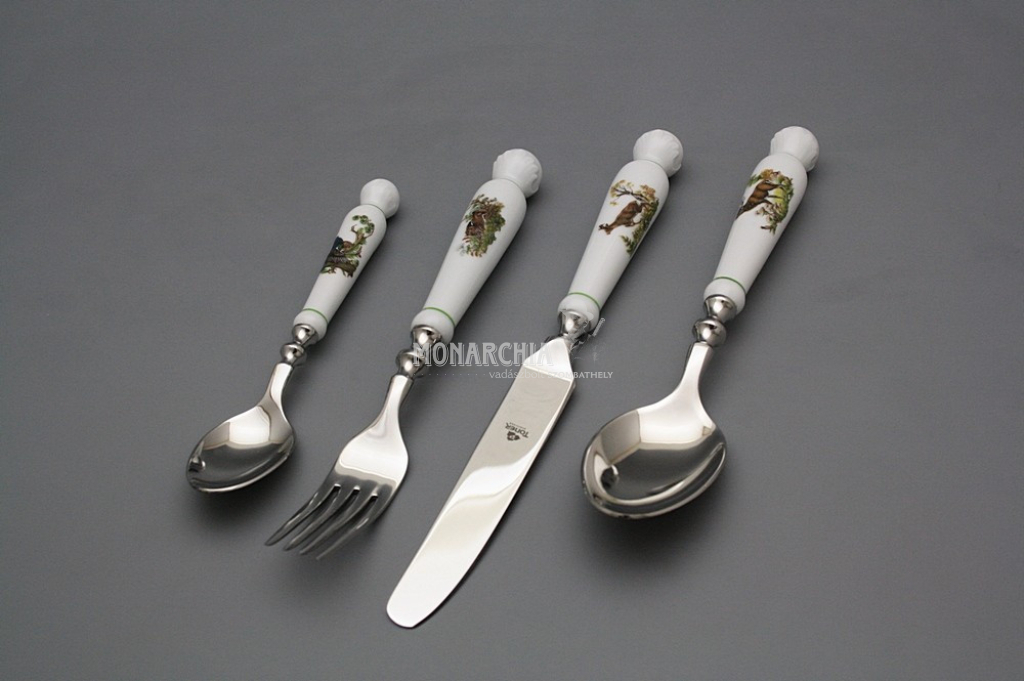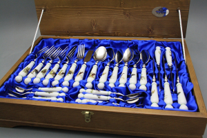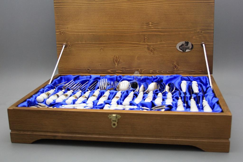 Luxus 24 darabos evőeszközkészlet vastag falú, kemény porcelánból, exkluzív fadobozban. Tartalma: 6x kés, 6x villa, 6x kanál, 6x teáskanál. Különböző vadmotívumokkal. Színgazdagsága egyedülálló, így a legigényesebb vásárlók igényeit is kielégíti. Gyönyörű ajándék. Ajánljuk például házassági évfordulóra, születésnapra, névnapra, vagy esküvőre.