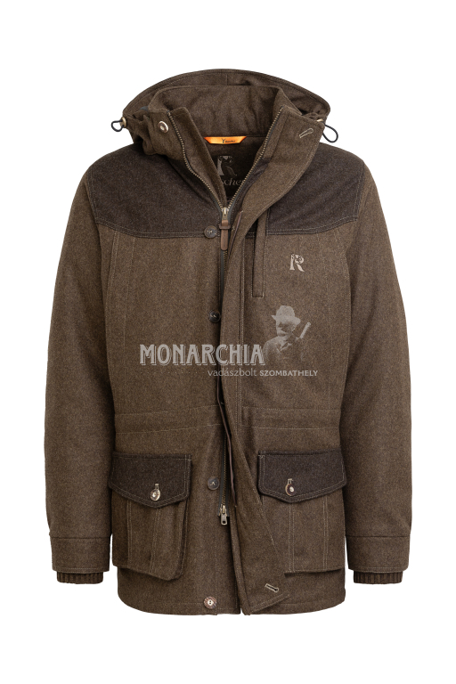Részletek ...Funkcionális és elegáns vadászkabát kiváló minőségű, 100% gyapjúból készült bajor lódenből. Kétféle barna színű kialakításának köszönhetően ez a kabát vadászatra is alkalmas, de a szabadidőben is sokféleképpen kombinálható. A Bionic Finish víz- és szennyeződésálló tulajdonságot kölcsönöz a lodennek. A 150 g/m²-es Thinsulate® bélés nagyon jó hőszigetelést biztosít, és a lóden felsőanyaggal kombinálva a kabátot erősen szélállóvá teszi. A kiterjedt zsebeknek és a funkcionális elrendezésnek köszönhetően ez a kabát nagyon sok tárolóhelyet kínál a vadászfelszereléshez, és a okostelefon, a vadászzsák és az autó kulcsai is biztonságosan elhelyezhetők benne. A hátoldalon található lövéshez kialakított redő, a bélelt és levehető kapucni, valamint az állítható derékrész kiváló viselési kényelmet biztosítanak.