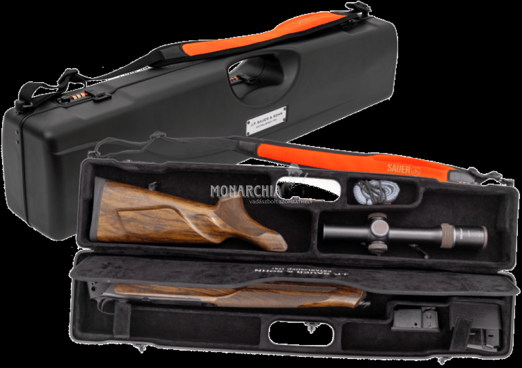 A Sauer ABS Compact Case I egy kimondottan a vadászat és fegyverszállítás igényeire tervezett, masszív és praktikus puskakoffer, amely ideális társad lesz hosszabb utazásokon, külföldi vadászatokon vagy napi terepbejárások alkalmával. A robusztus, ABS műanyagból készült külső burkolat maximális védelmet nyújt a fegyvernek — repedésektől, ütődésektől és szállítás közbeni rázkódástól egyaránt — miközben kompakt, kézben és vállon hordható kialakítása miatt könnyen kezelhető marad.