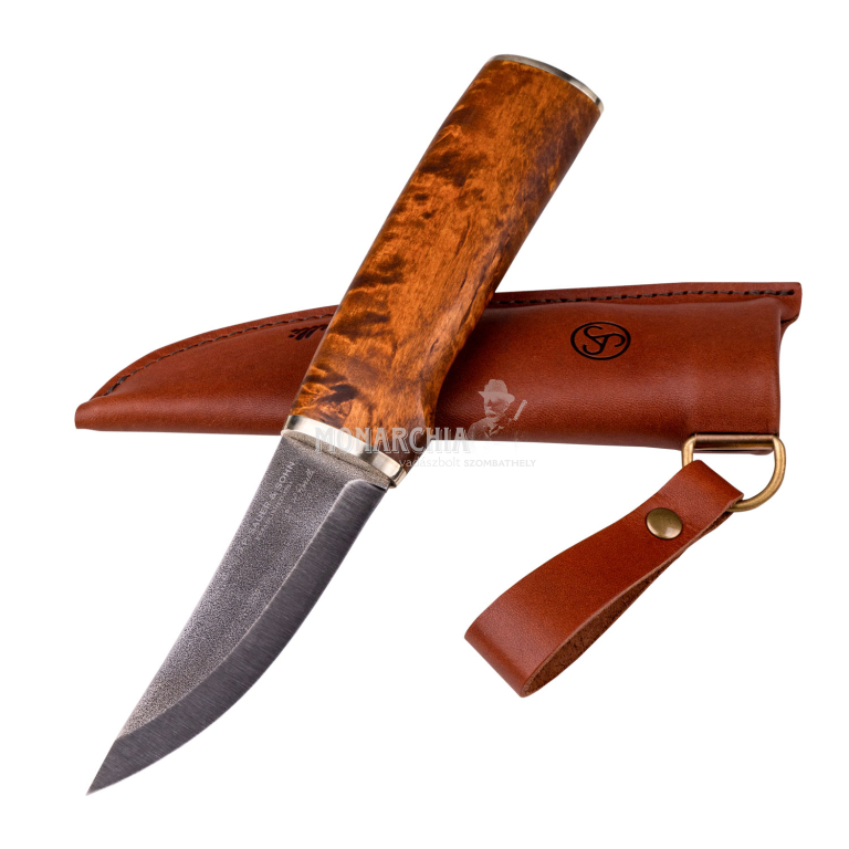 Részletek ...A markolat különleges, gondosan válogatott, olajjal kezelt nyírfagyökérből készül, amely nemcsak esztétikai élményt nyújt, hanem nedves körülmények között is biztos fogást garantál, így a terepen is megbízható kezelhetőséget ad. A markolat végét 925-ös sterling ezüst zárja le, amelyen a limitált kiadás jelölése is megtalálható, tovább erősítve a kés exkluzív karakterét. A késhez tartozó tok növényi cserzésű finn marhabőrből készült, amely nemcsak tartós és időtálló, hanem természetes megjelenésével tökéletesen illeszkedik a kés karakteréhez. A praktikus függesztési megoldásnak köszönhetően viselése kényelmes és biztonságos, akár egész napos használat során is. Ez a modell nem csupán egy eszköz, hanem egy történet – a skandináv vadon hangulata, a kézműves hagyomány és a Sauer név presztízse találkozik benne. Ideális választás mindazok számára, akik nem elégszenek meg az átlagossal, hanem olyan tárgyakat keresnek, amelyek mögött valódi tartalom és örökség áll.