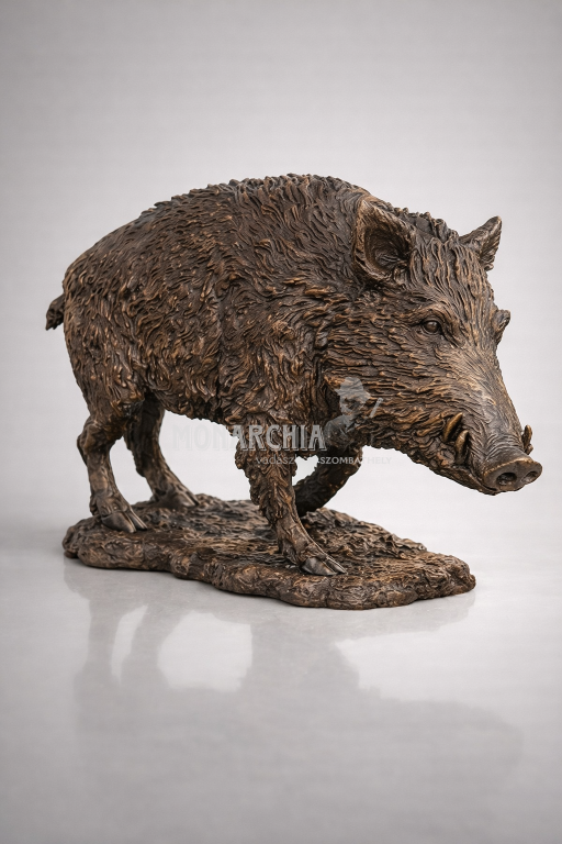 Élethű, monumentalitásával lenyűgöző bronz vaddisznó szobor, amely életnagyságú méretével és dinamikus testtartásával a természet szellemiségét hozza otthonába, vadászházába vagy kertjébe.